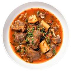 Assorted cuts of well seasoned meat cooked till tender in a light Naija style pepper soup broth. Seasoned to perfection with authentic local pepper soup spices, and garnished with leafy greens for that hearty, spicy flavor you’ll love